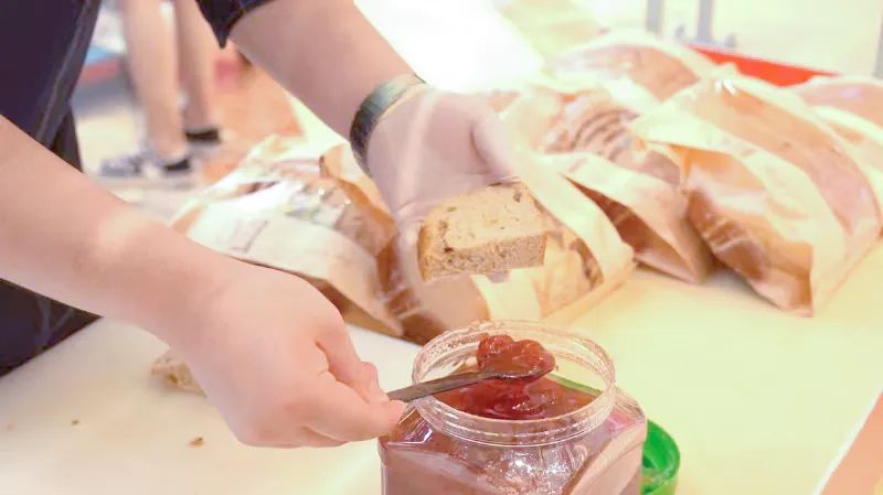 另一位参与试吃的阿姨告诉记者,今天的试吃会上,她两次来到大列巴面包的试吃摊位前品尝,觉得很好吃因此又去吃了一次。第二次去试吃时,摊主认出了她,但还是很热情地为她涂上了满满的草莓果酱并悉心介绍。在与摊主的交流中,阿姨了解到面包试吃摊位的店铺正好在试吃会场旁边,因而打算去店里购买一些带回家。“有时候自己不好意思去试吃店铺的产品,但是通过参与这种综合性美食试吃会,就可以尽情地品尝并选购自己喜欢的美食。”阿姨表示,这样的试吃集市活动,不仅烟火气十足,更让她感到自己所在的社区里充满里人情味。