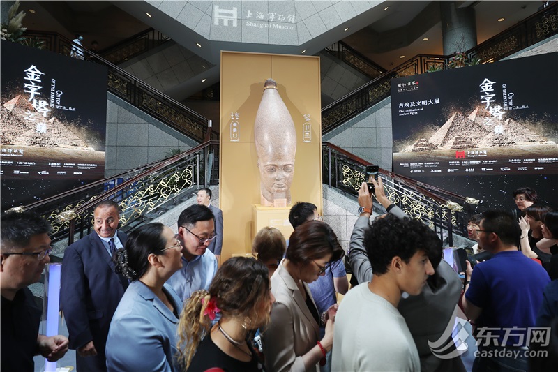 东方网记者柏可林7月17日报道:7月17日,上海博物馆举行“金字塔之巅: 古埃及文明大展”开幕活动。展览将于19日对公众开放,展期持续13个月,向观众全面揭秘古埃及文明面貌及其最新考古发现,推动中埃文明互鉴。