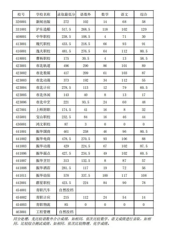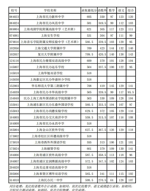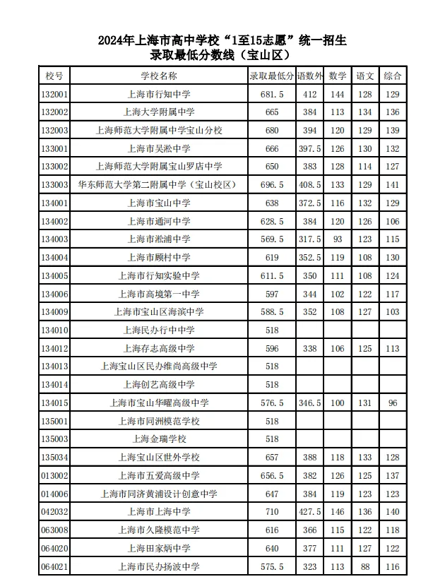宝山区2024年上海市高中学校/中职校“1至15志愿”统一招生录取最低分数线公布!