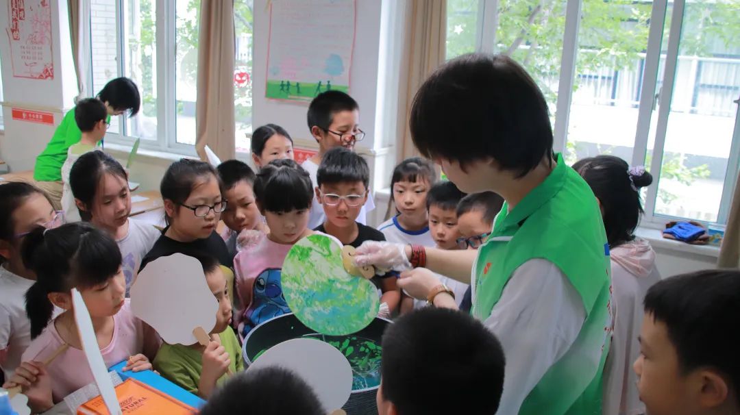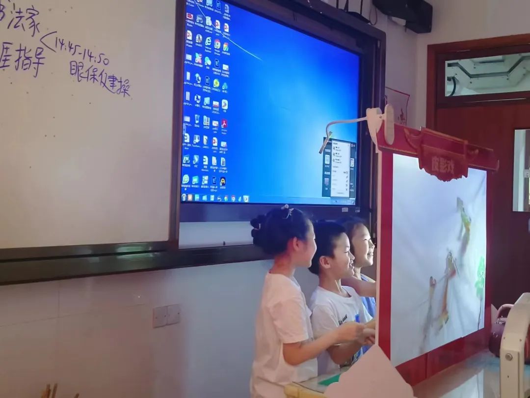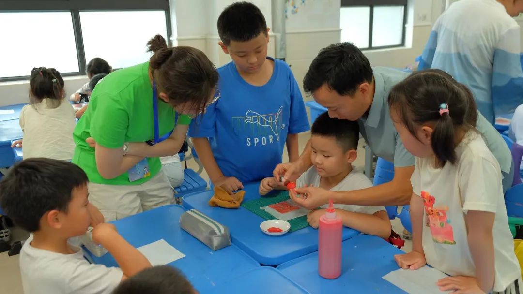 “太漂亮了,太神奇了!”在小朋友们的惊叹声中,一把图案独一无二的漆扇出水,随后在老师的指导下,小朋友们体验了天然漆调色、旋转扇面上色和扇子晾干等漆染工艺步骤。皮影戏课程更是充满了欢乐与惊喜,小朋友们上台亲自操控皮影人物,演绎了《西游记》中的经典片段。拓印课程让孩子们感受到了传统文化的古朴韵味,小朋友们亲手制作了“福”字拓印,将美好的祝福带回家。