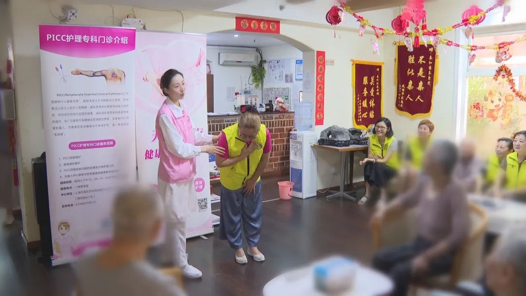 除了护理员要学习,医护人员还给老人也做了指导。“阿姨爷叔,你们要是吃东西被卡住了,一定不要去用手抠,因为这个动作会让异物卡得更深。”医护人员示范错误处理方式的同时,指导老人正确的处理和呼救方法。