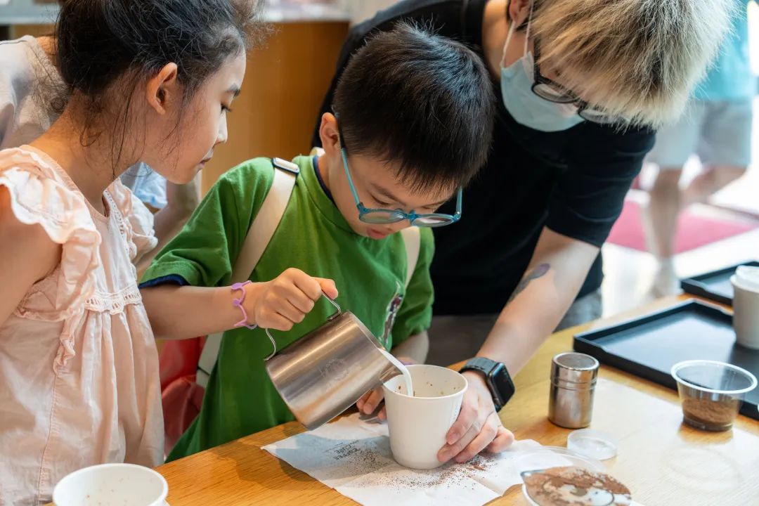 在这个国内首座全弹簧浮置建筑的底部探索,孩子们亲眼目睹了巨型弹簧,了解到地铁运行和户外噪音产生的振动,就是被这些神奇的弹簧隔振器高效隔离。孩子们还实地探访了B2层绿植环绕、雅静舒适的花园,参观了音乐家们演出前休息的地方。除了参观、探秘,小朋友们还体验了一把“小小咖啡师”,欣赏完美妙的音乐,再喝上一杯自己调制的coffee,好“city”啊!
