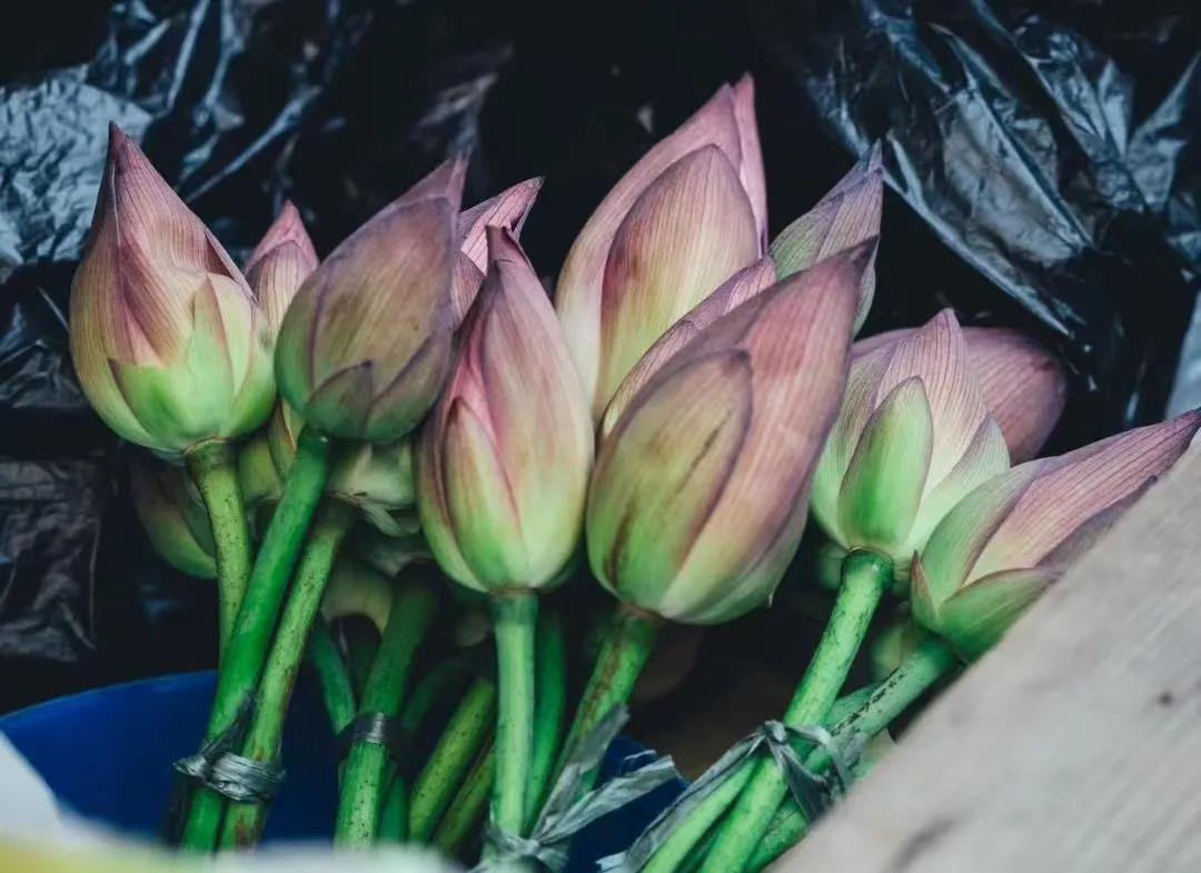 清晨,在练塘镇的老街上,老翁正挑担贩卖夏季的限时浪漫,一把把鲜采的荷花、莲蓬头和古色古香的老街相映成趣。刹那间,如时间指针回转,回到玩具匮乏的童年旧时光,而这些夏季的鲜物就是最好的玩伴。