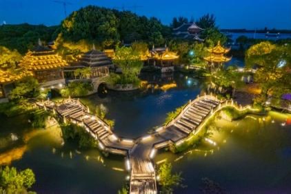 夜游纳凉新体验 22 万只灯珠点亮水博园带你“穿越古今”