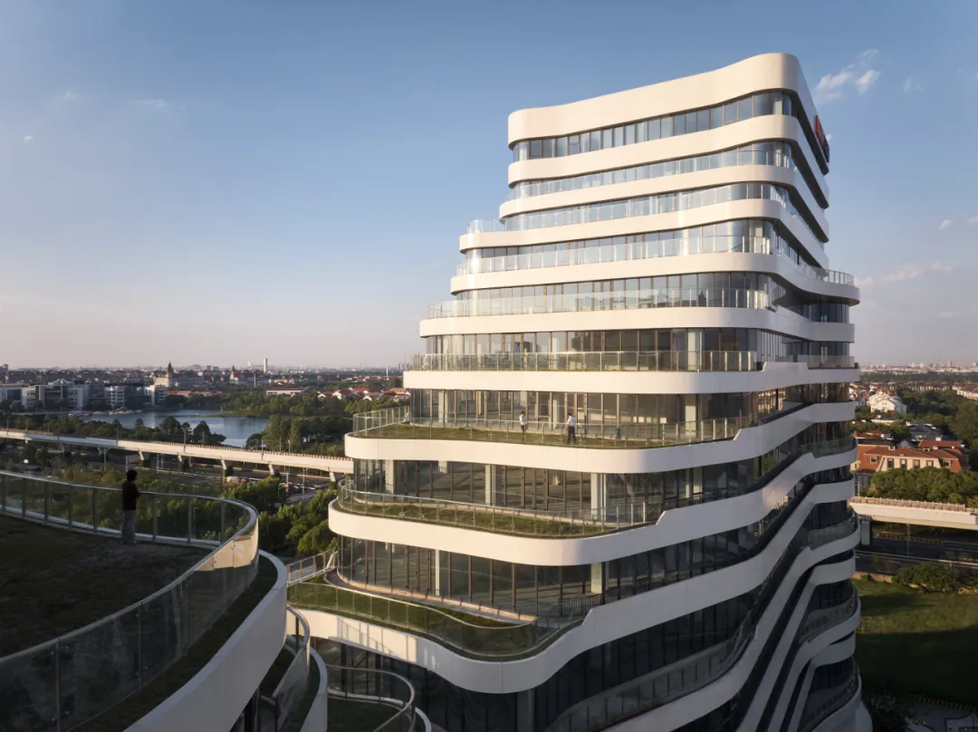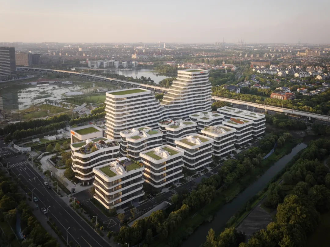 由HATCH汉齐建筑事务所操刀规划和建筑设计的MAX科技园上海·美兰湖,打破这种刻板印象,塑造与周遭生态景观相连、富有动态与开放性,并配套以餐饮、公寓及休闲健身设施的智慧科创社区。