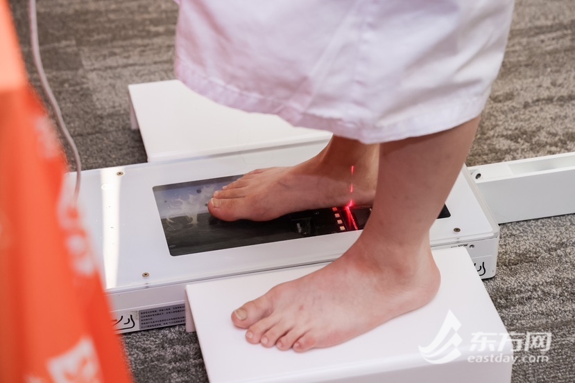 现场,足踝外科主任施忠民首先向青少年们介绍了足弓的秘密。“足弓,顾名思义,像‘拱桥’一样支撑起我们的身体,缓冲运动时产生的震动,维持我们身体的平衡与稳定。”为了让活动现场孩子了解自己脚底的小“拱桥”是否健康,医生们为他们进行了足弓检测,筛查扁平足、高弓足等问题。通过仔细观察青少年正常站立时的腿部形态,再结合触摸足部,对足的外部情况形成初步评估;随后,借助足底压力分析仪,数字化采集孩子们的足压、足形,通过分析足底压力情况对足部进行精准评估。体验现场,医生就发现了几位有扁平足特征的孩子,对此,医生建议家长给孩子穿大小软硬适宜的鞋子、垫矫形鞋垫、加强足部锻炼和按摩,并且前往医院做进一步的检查,以便更准确地判断足部结构是否异常。