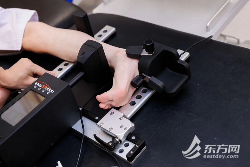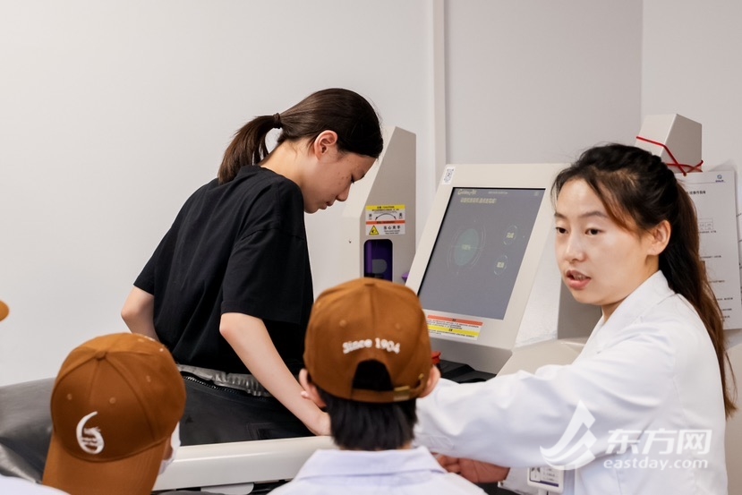 走进足踝外科病房,在用以术后病人早期康复训练的康复室里,一部反重力跑台成为全场青少年们关注的焦点。李文逍医生向大家介绍,反重力跑台是一种先进的康复和训练设备,利用空气压力技术减轻使用者的体重负荷,帮助其进行低冲击、高效的运动训练,满足康复者无痛无损伤的低速训练。青少年们跃跃欲试,迫不及待地想要体验,“我宛如在太空中漫步!”学生小张惊呼道。除此之外,在医生的陪同下,体验者们还体验了关节运动功能参数检测仪,并进行了韧带松弛检测,每位参与的青少年都获得了一份属于自己的运动功能参数报告。