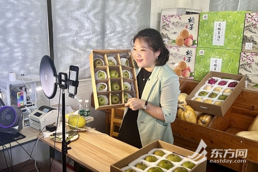 东方网记者王泳婷8月12日报道:“直播间的朋友们大家好,我是你们的桔香园陆掌柜!大家看一下,‘所见即所得’,这是我们绿华的翠冠梨,来自世界级生态岛上海崇明......”中午12点,陆慧慧手捧一箱个头饱满的翠冠梨,开始对着手机直播,背景是崇明绿华镇地产的金瓜、葡萄、黄桃、水蜜桃等特色农产品。