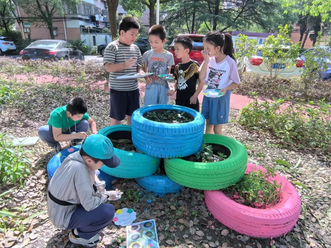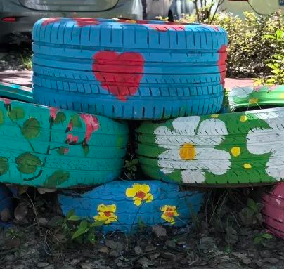 另一块区域则被打造成儿童轮胎涂鸦园,这里放置了十几个废旧轮胎,党总支通过在轮胎上涂满色彩鲜艳的图案变废为宝。打造完成后,这片区域内色彩艳丽的轮胎和地面上五颜六色的跳房子图案,吸引了大批放假的孩子在这里玩耍,成为小区新的一处儿童欢乐园地。