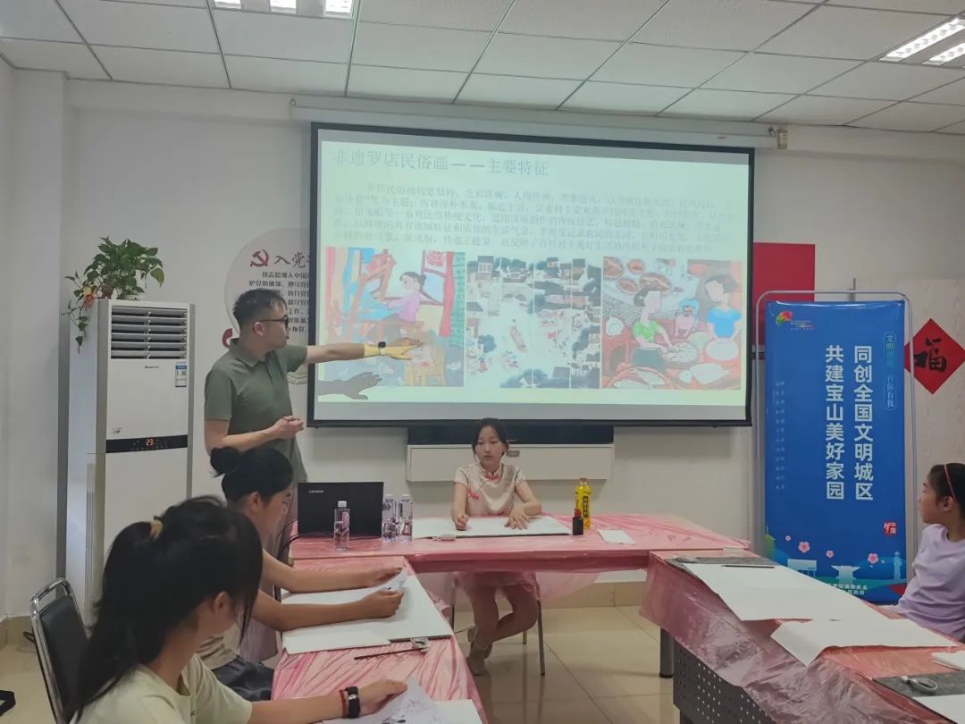 “你好国学”之民俗画体验课程邀请罗店民俗绘画艺术传习创研中心的王一天老师,在鼎苑居委和慧苑居委开展,共计40名小朋友参与。王老师详细介绍了民俗画的特征和绘画步骤,在绘画体验中,学生们不仅体会到了罗店民俗画鲜明的地域特征和浓郁的生活气息,还促进他们对本土文化的认同和传承。