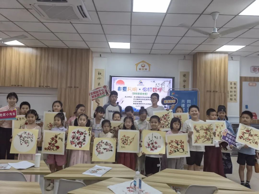 国粹之魂,笔墨间演绎千古风华。暑假期间,宝山区罗店镇新时代文明实践分中心、镇学生社区实践指导站联合罗溪书院、罗店民俗绘画艺术传习创研中心在创全点位小区,开展了“非童凡响·你好国学”主题系列活动,通过陶冶艺术情操、提升艺术涵养的活动,让“小先生”成为知书达理的新时代好少年,提升居民对创全工作的认同感及知晓度。