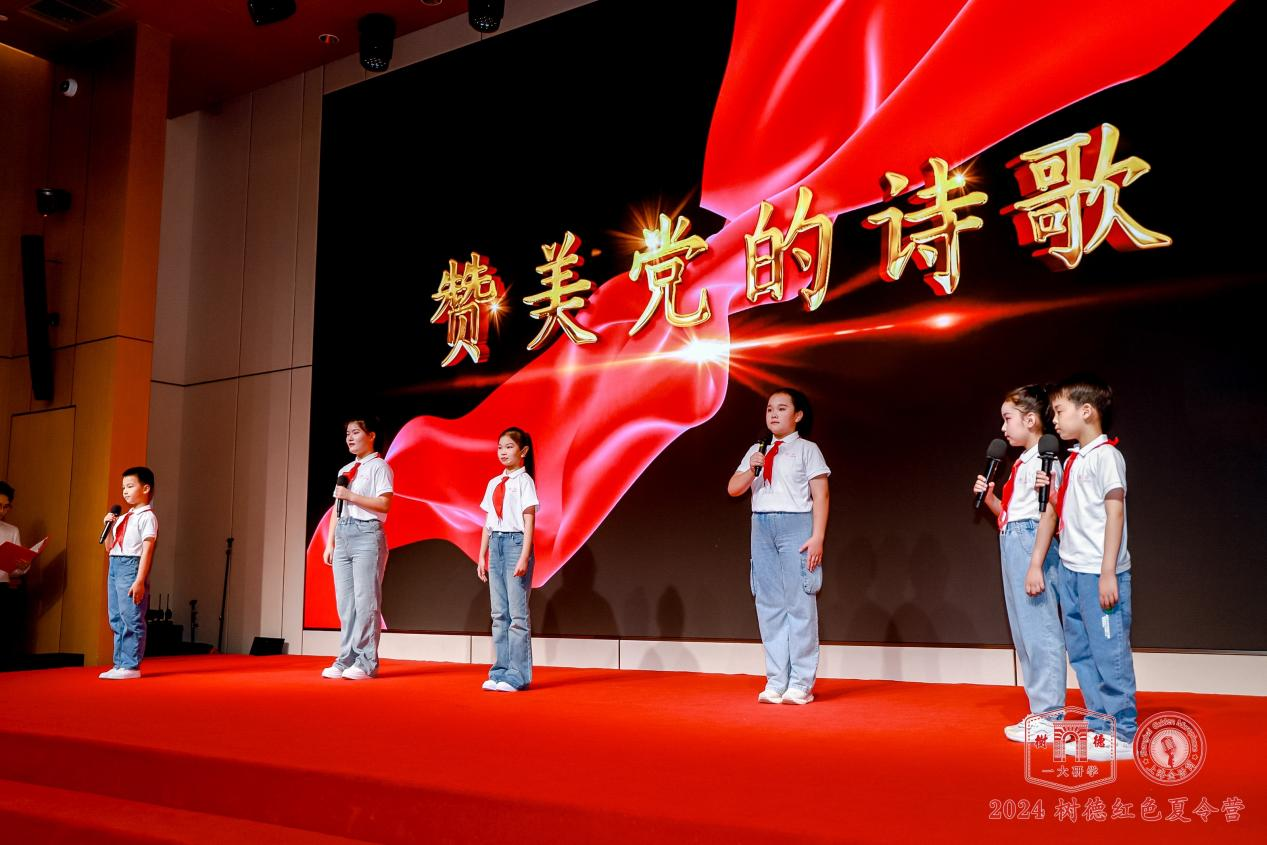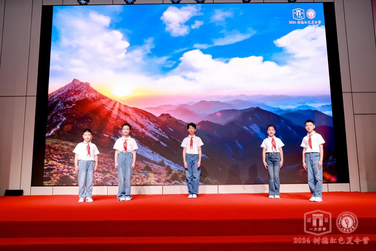 展演现场,回顾视频生动展现了营员们从初入营时的懵懂憧憬,到在红色文化浸润中蜕变的历程。展演伊始,营员们以《少年有志》的歌舞表演点燃现场,统一服装下的整齐舞步和充满活力的歌声,彰显了新时代青少年的蓬勃朝气和远大志向。紧随其后的是《东方红·长征》和《赞美党的诗歌》两段红色主题朗诵。最后,全体营员齐声演绎的《党旗颂》将汇演推向巅峰。