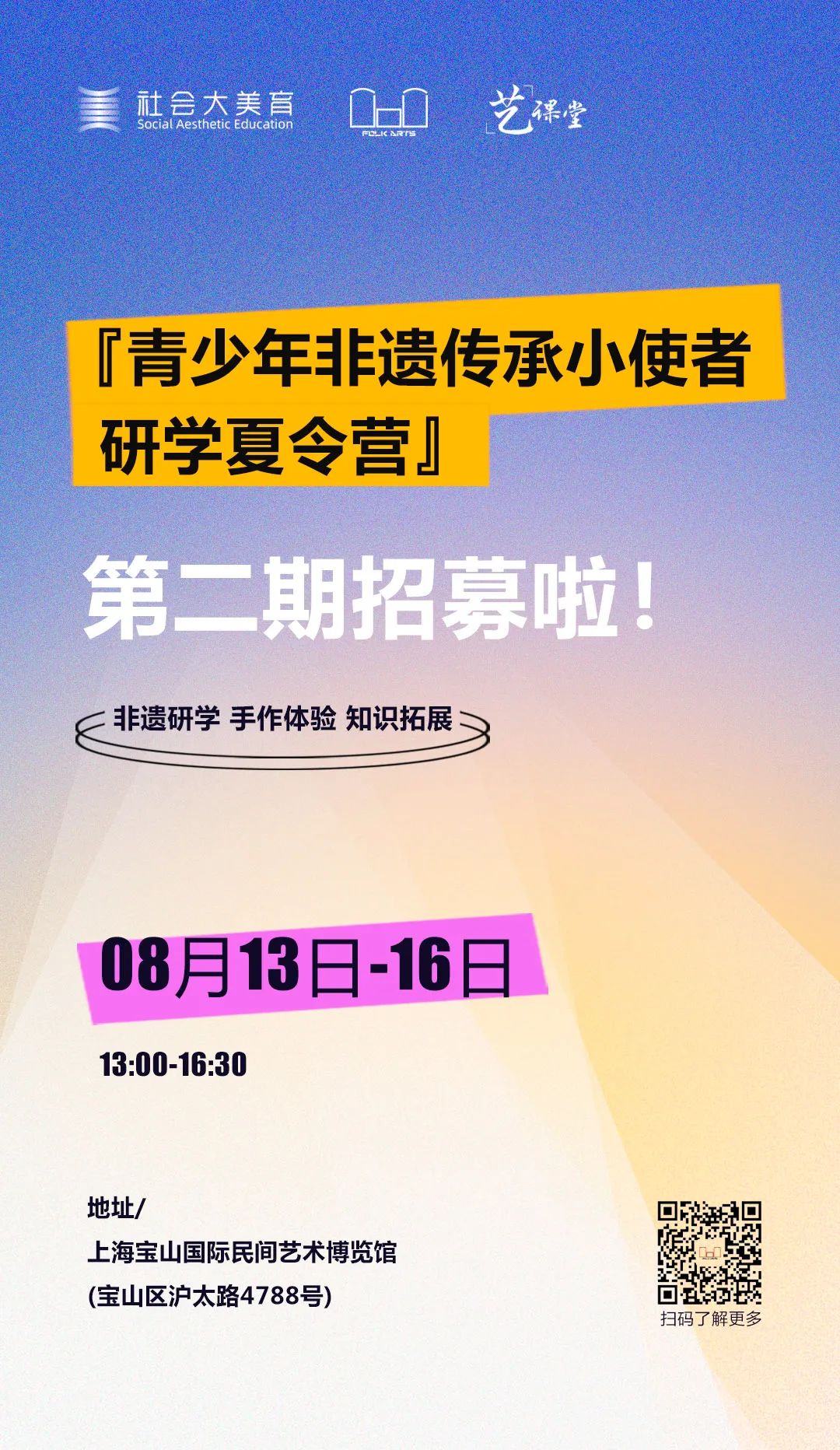 针对青少年组织开展一场以“邮轮+非遗”为主题的文化传承特色营,通过主题课程、集中培训、手作体验、团队协作等形式,让孩子体会到邮轮文化同民间艺术相互交融的魅力和成就,提升美育素养。详情请戳这里。(记得提前在微信公众号上报名哦)