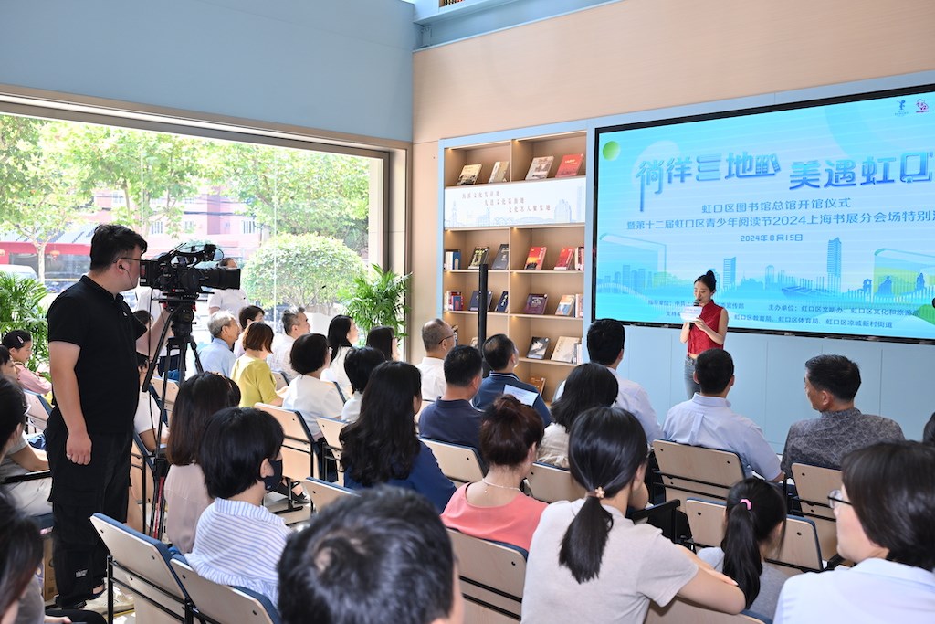 8月15日恰逢“上海书展”。2012年夏天,虹口区图书馆总馆落成开放一年后,首届虹口区青少年阅读节孕育而生。阅读节主要面向虹口地区的少年儿童,在暑期集中开展形式多样兼具知识性和趣味性的阅读推广活动,丰富广大虹口小读者的精神文化生活,至今已举办至第十二届。今天,虹口区图书馆在“2024上海书展”期间正式开馆,6名“虹口阅读小达人”收获了“阅读礼包”;来自高校、出版社、社区、读者群体的4位嘉宾受聘成为图书馆的“阅读推广人”。现场讲座《我的动物朋友》特邀著名儿童文学作家、“动物小说大王”沈石溪老师,带领小读者走进丰富多彩又情感贲张的动物世界,饱览自然生灵的复杂情感和绝地绽放的动物野性。