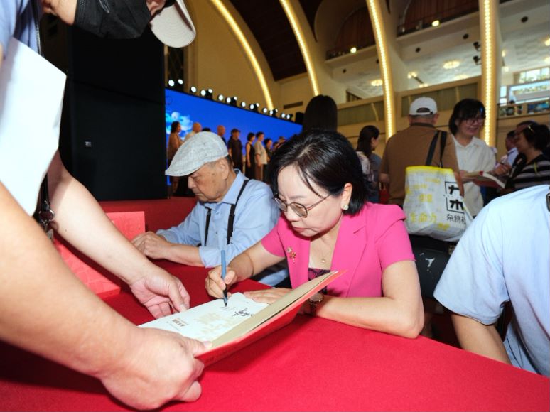 2024年8月17日中午,在上海书展中央大厅,许多读者和谢晋影迷冒着酷暑专程赶来,参加《永不谢幕》新书发布暨签名售书活动,深情表达对谢晋导演的怀念和致敬。