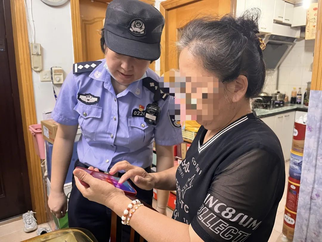 民警到场接过苏阿姨的手机,迅速识别并查看苏阿姨所填写的资料后,更加确信这是一起诈骗案件。在民警和居委会工作人员的耐心解释下,苏阿姨悬着的心也逐渐放下了,对他们的及时提醒表示和帮助表示由衷感谢,“多亏平时民警和居委会工作人员在社区内大力宣传反诈骗,让我们安装了国家反诈App,在诈骗电话打过来的时候能及时检测到。”