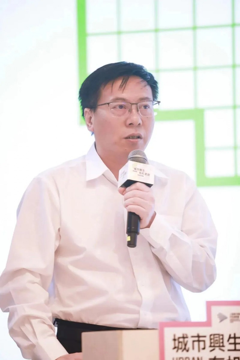 上海市规划和自然资源局副局长徐明前致辞,高度肯定了本次论坛由联盟指导,万科积极响应的工作组织模式,强调城市更新是一个系统工程,面临许多压力和挑战,非常需要自下而上发动全社会力量共同参与,把空间资源、资金、主体等各类要素有机结合起来,形成最大合力,共同研究突破难点和裉节问题。也期待未来联盟继续发挥综合平台纽带作用,开展多样化的活动,组织发动联盟不同行业的领军企业开展设计端、投资端、金融端、经营端等的交流活动,让大家在交流和思考中碰撞出更多的灵感火花,一起推动上海城市更新事业不断前进。