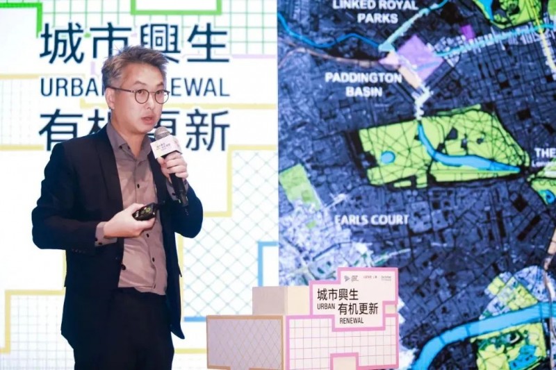 Farrells法雷尔国际建筑设计董事邓柏基以“伦敦切尔西滨水再开发,‘驱动伦敦’历史发电厂的居住复兴”为题,讲述了伦敦如何利用历史发电厂的工业遗址,通过创意设计与科技应用,将其打造成为现代化的居住与休闲空间。他的演讲展现了伦敦在城市更新中对于工业遗产的尊重与再利用的智慧。