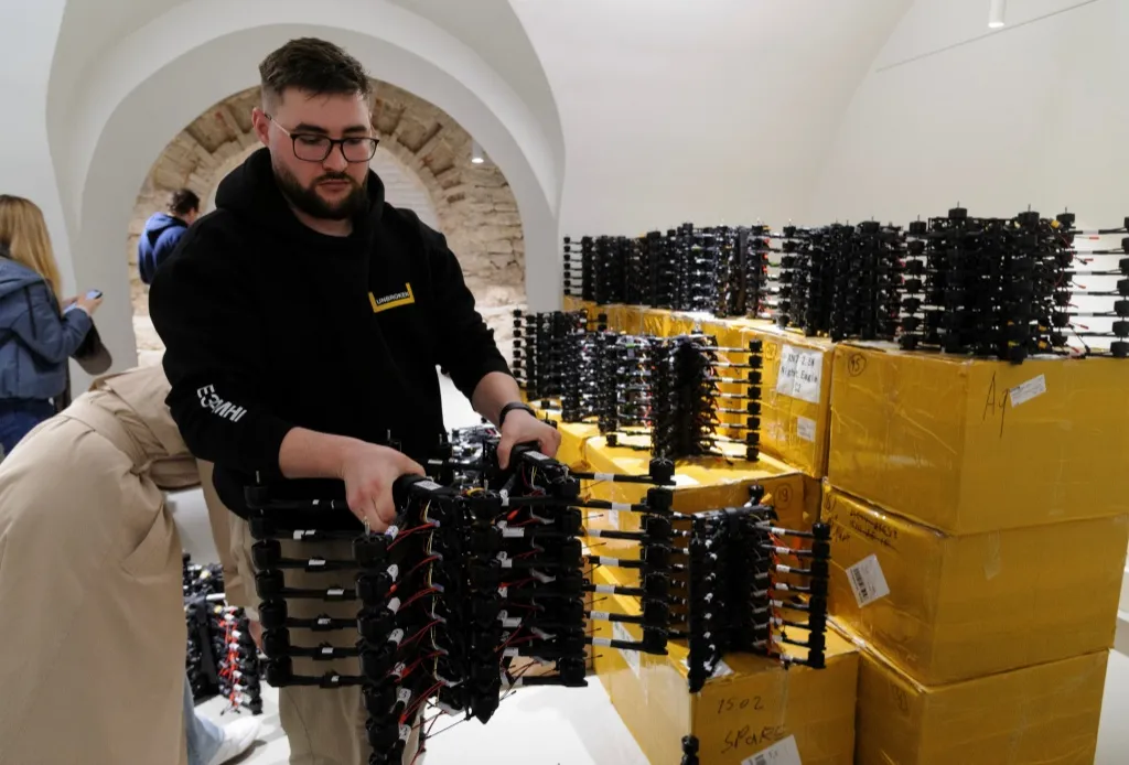 这是今年利沃夫市政府向乌克兰军队移交800架FPV无人机的照片。图片来源:IC Photo