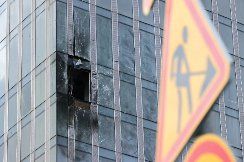 一架袭击莫斯科的乌克兰无人机被电子战设备压制后失去控制,与“莫斯科城”内的一处在建建筑碰撞后坠毁。图片来源:IC Photo