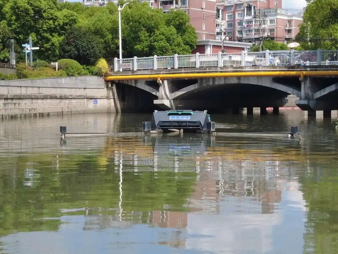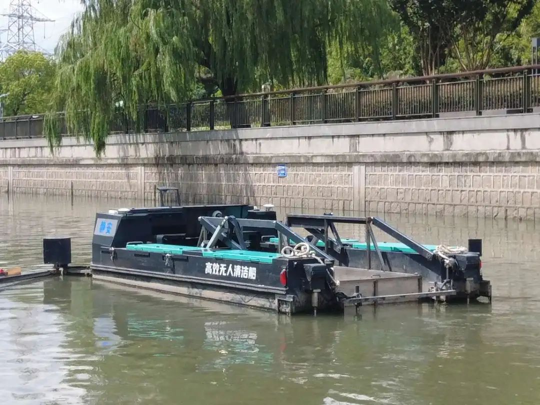从去年10月起,由静安区河道水政管理所牵头,河道养护单位以及无人船公司参与,在彭越浦及徐家宅河进行了无人清洁船在上海城区河道水面清洁的落地应用和功能验证。此次汛期无人清洁船的应用,是中心城区首次启用无人船河道保洁。与传统人工作业相比,无人船具备了自主航行、智能感知、高效清洁等功能,最大收集宽度可达15米,收集载重达1.4吨的垃圾。