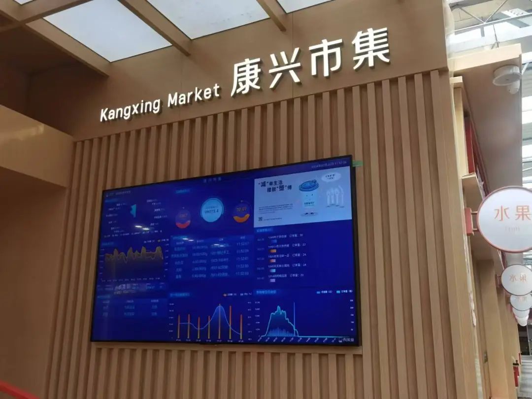 新市集既有舒适的环境,又保留了一些传统菜场的格局,购物环境进一步提升,硬件设施齐全,全场采用统一的智能电子秤,引进大数据设备,实现传统市场向新型市场的转变。记者注意到,菜市场门口安装了智慧大屏,显示销售数据,实时传送,消费者可以看到哪些菜的销量最高。