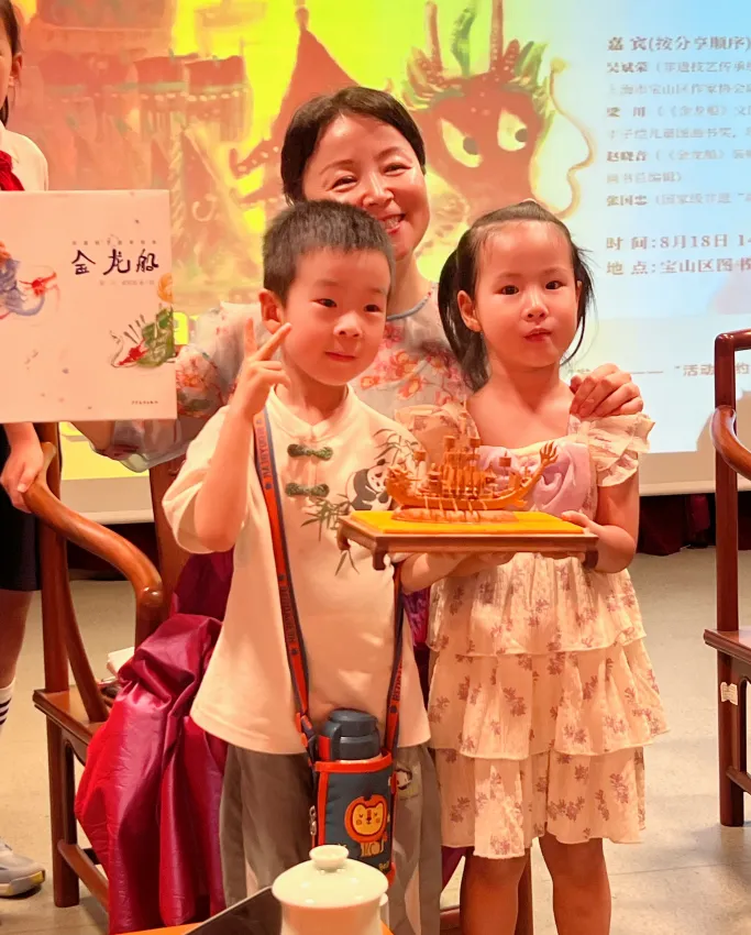 “中国原创绘本中近乎完美的作品。”“宝山案例、宝山实践不但走在了中国最前面,也走到了世界最前面。”非遗技艺传承绘本出版以来,小读者、大学者们纷纷给出了他们的评价,毫不吝啬溢美之词。上海书展前夕,非遗技艺传承绘本《金龙船》入选了《中华读书报》好书榜。读书报总编为《金龙船》亲笔写下推荐语:“新颖、儿童化的构思,富于悬念的情节转折,图画细节的增添、设计和隐藏,让作品充溢着蓬勃的想象力、创造力和童年趣味。水墨画面气韵生动,灵动跳脱。该作书写的是国家级非物质文化遗产罗店龙船的振兴,但却跳出了宏大叙事的窠臼,精准把握儿童的阅读心理,赋予一条船以个体生命的感受,这种通感的表达与儿童独特的非逻辑认知有异曲同工之妙;更在一条船的个体生命叙事中融入历史进程,展开对国家、民族命运的启示与思考。”