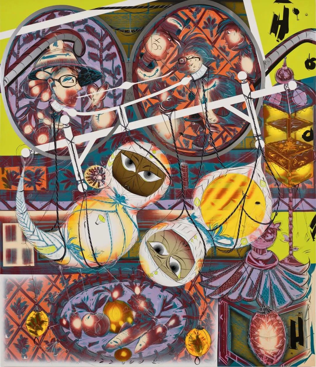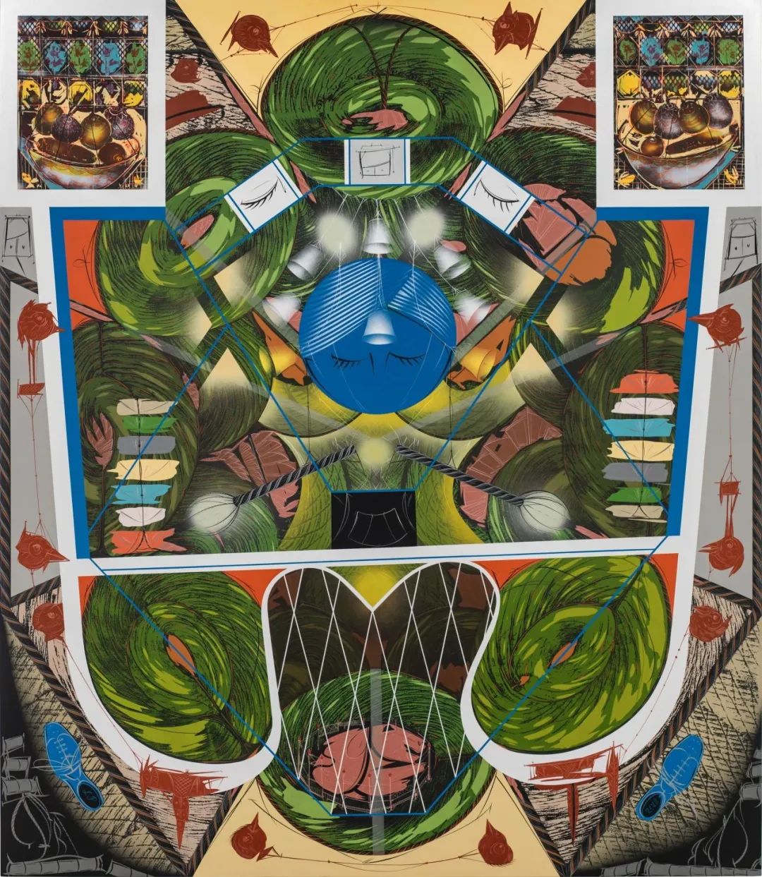 拉里·皮特曼,《共生主义》,2021,259.1×223.5 cm,丙烯、乙烯基树脂漆、气溶漆、石膏面画布、木板,私人收藏