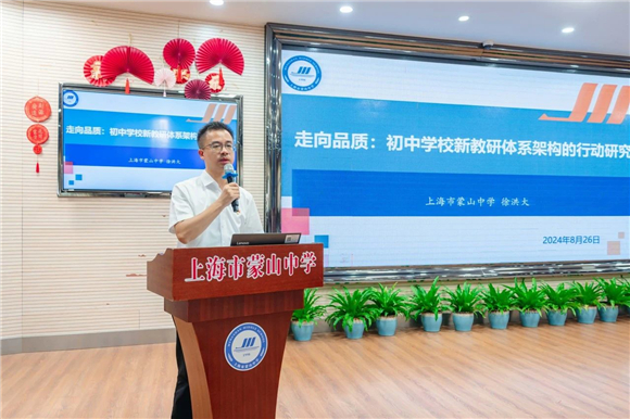 蒙山中学校长徐洪大作区重点项目《走向品质:初中学校新教研体系架构的行动研究》成果汇报,展示了在教研体系的创新与实践中,蒙山教育集团如何以品质为导向,构建新教研体系,推动教学变革的深入发展。