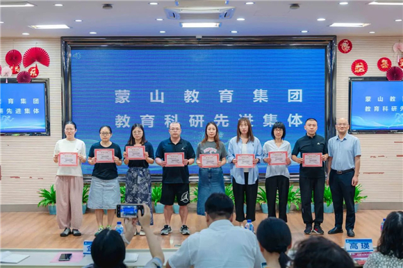 金龙为蒙山教育集团教育科研先进集体颁奖