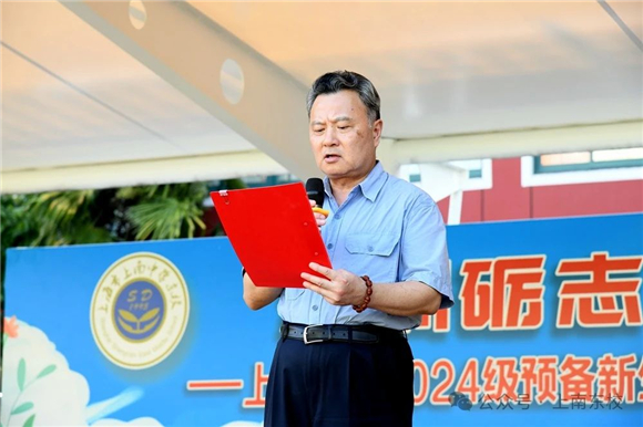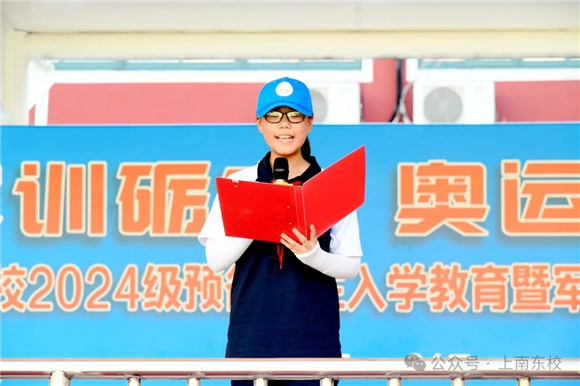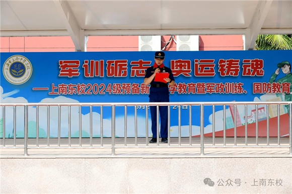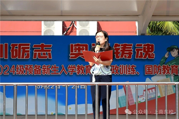 徐和权主任宣布上南东校2024级预备新生国防教育暨入学军政训练开营,强调军政训练、入学教育的目的和军训要求,并期望同学们在军训中过得安全、充实、愉快!