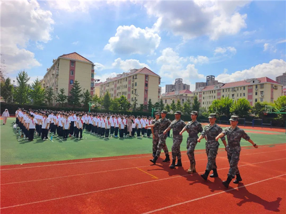 教官带领五个班级的方阵整齐地集结到操场,赵国祥副校长做了动员讲话。接着,预备(1)班学生刘思涵代表全体预备新生发表了讲话,而后,五位教官亲自给同学们展示了军训训练项目,整齐划一的动作让同学们佩服不已,最后教官带领各班展开军训。仅用了短短两天半的训练时间,学生们已经初见成效,每个班级的队伍踏步有力、动作整齐、口号响亮、士气高昂,展现出了青春澎湃的热情和年轻热血的风貌。