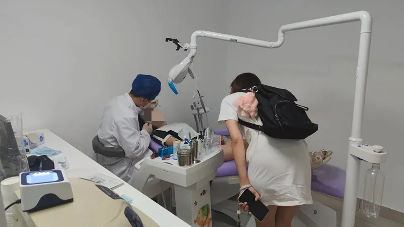 眼科就诊量攀升的同时,医院口腔科开学前的预约名额也全部满了,就诊人群中有不少孩子的身影。“她蛀牙有段时间了,之前都拖着,马上要开学了,就抓紧来做治疗了。”诊疗椅上,乐乐正在修补龋齿,乐乐妈妈则在盘算后续治疗。