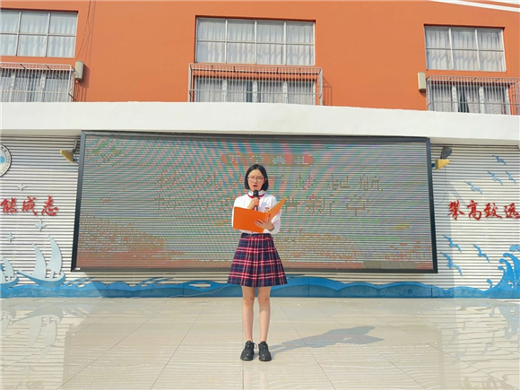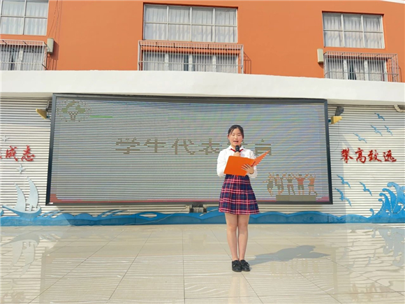 初三(1)班的牛依霏作为学生代表发言。她为同学们提出三点建议:
