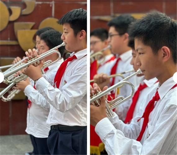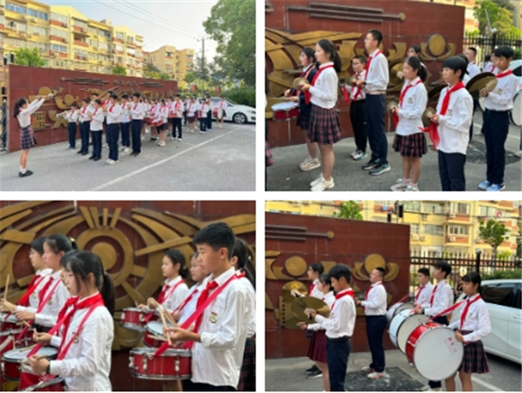 校鼓号队也以整齐嘹亮的鼓号声欢迎归来的老师与学子们。