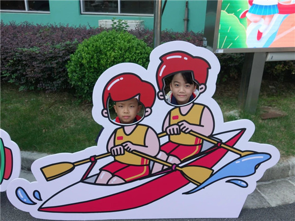 羽毛球的轻盈飞跃、乒乓球的旋转魅力、击剑的优雅对决、举重的力量之美以及双人皮划艇的默契配合,五大奥运项目展板熠熠生辉,仿佛将同学们瞬间拉入了奥运的激情赛场。