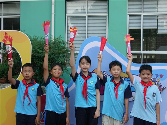 典礼的最后,全体学生高举写有新学期展望的自制火炬,并大喊本次活动的主题:“奥运精神永相伴,少年朝气正当燃!”