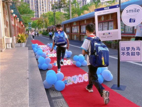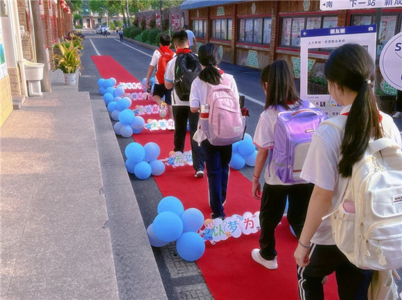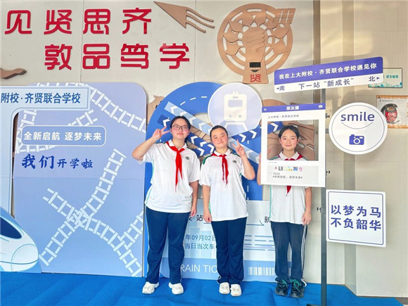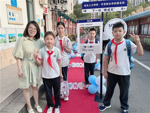 活动当天,全校师生在“我在上大附校?齐贤联合学校遇见你”的新地标前留下了合影,并纷纷参与“朋友圈”打卡活动,分享新学期的喜悦与期望。学校还为师生们精心准备了象征美好愿望的“理想号”列车车票,为新学期的奋斗之旅增添了一抹亮丽的色彩。