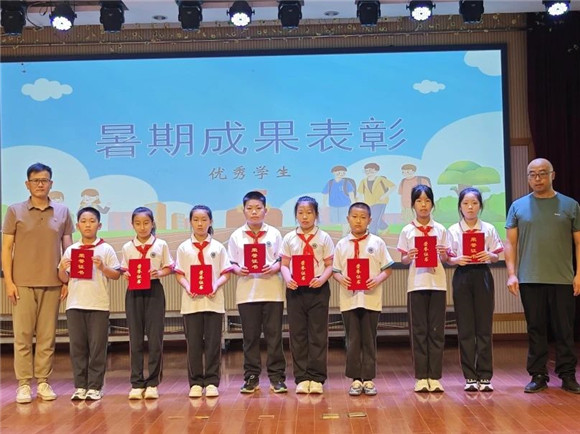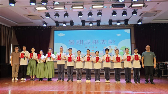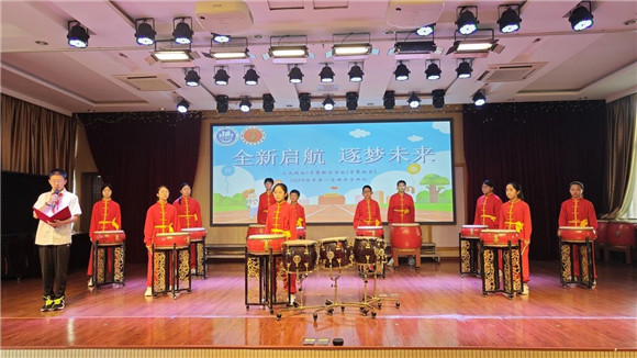 9时,庄严的开学典礼在学校报告厅举行。典礼在铿锵有力的中国鼓声中拉开序幕。首先,伴随着雄壮的国歌声,升旗仪式庄重而感人。随后,沈婷洁副校长致辞,鼓励全校师生以饱满的热情迎接新学期的挑战,并为大家描绘了学校未来发展的美好蓝图。紧接着,学校王佳燕副校长表彰了在暑期实践中表现突出的优秀学生、优秀班级和优秀志愿者,激励全体学生向榜样学习,争做新时代追梦人。