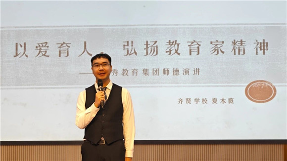 活动最后,夏木蕤老师发表了一场感人至深的演讲。他的言辞真挚而充满力量,深刻诠释了新学期师生们应如何秉承教育家精神,勇于担当,不断追求卓越,成为推动教育变革的积极力量。这番演讲如同一盏明灯,指引着全体师生在新学期的征程中坚定步伐、锐意进取。典礼在全校师生合唱中圆满落下帷幕,悠扬的歌声在校园里久久回荡,象征着上大附校?齐贤联合学校全体师生齐心协力、扬帆起航、共创未来的坚定决心。新学期,全体师生将继续以实际行动践行教育家精神,守正创新、培根铸魂,共同书写更加辉煌的教育篇章。