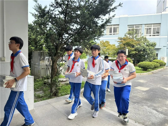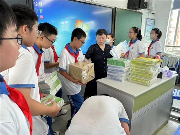 8月31日,华西学子纷纷回到校园,开始了新学期的报到和领书工作。各班学生展现出了良好的组织性和团队精神,有序地搬运书籍,默契地分发教材。同学们通过分工合作,齐心协力,让新学期的准备工作得以顺利进行。