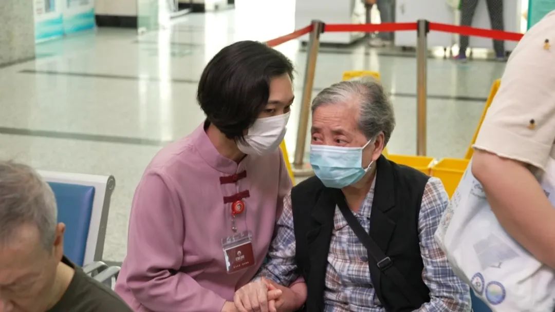 挂号、就诊、拿药,在专业护理员的陪伴下,陈奶奶顺利完成了就诊:“我年纪大了,一个人来医院确实不方便,跑上跑下的,加上我现在耳朵也听不清,和医生沟通比较费劲,有专业的护理员和我一起,我也放心一点。她昨天还打电话提醒我要穿双防滑的鞋子,我觉得蛮温暖,很贴心。”