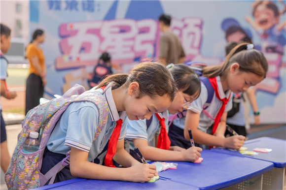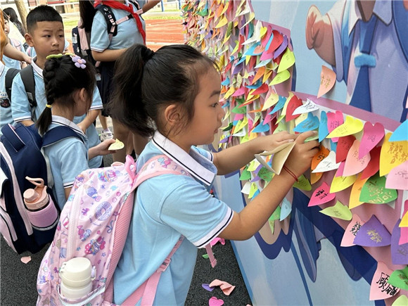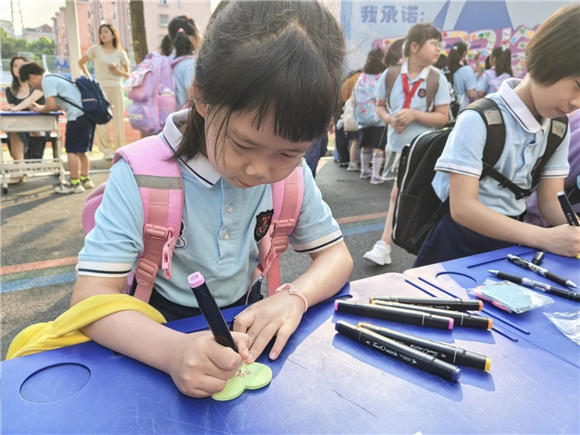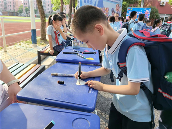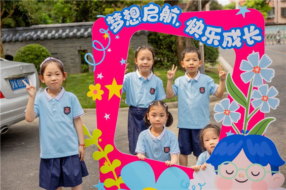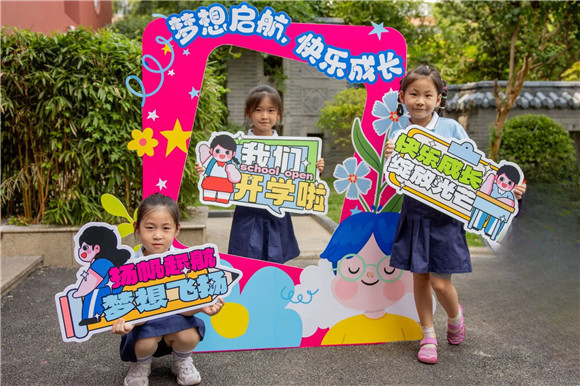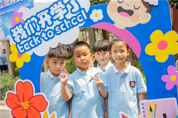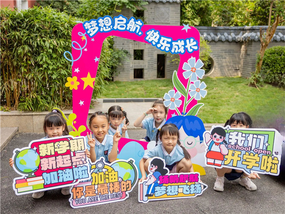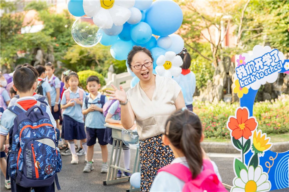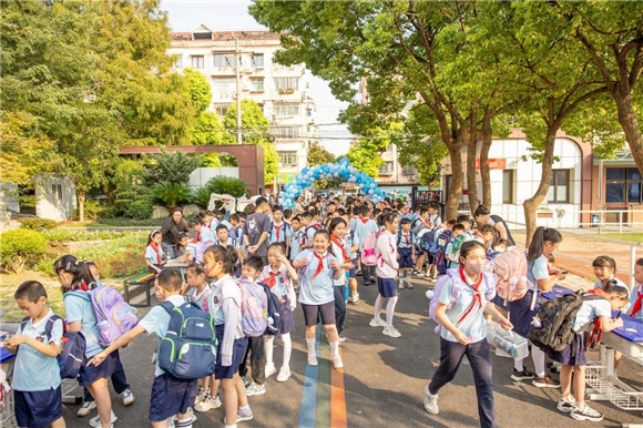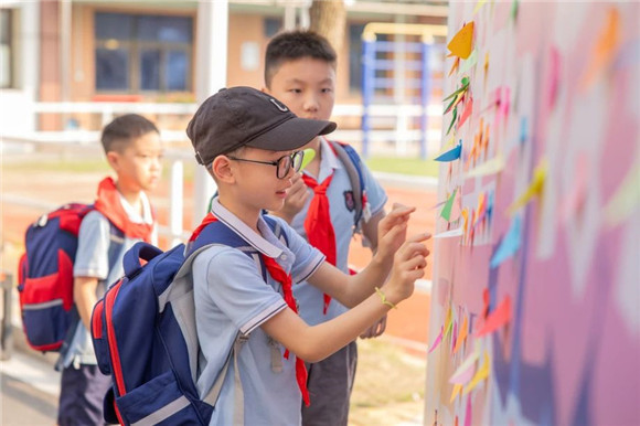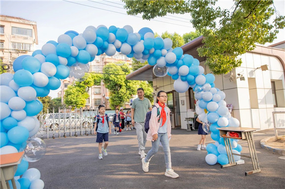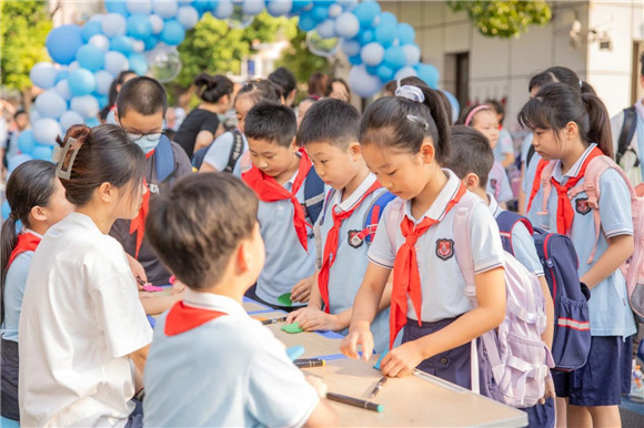 9月2日早晨,潼港小学的校园里热闹非凡,彩带和气球装点着每一个角落,小潼星们个个朝气蓬勃走进校园。