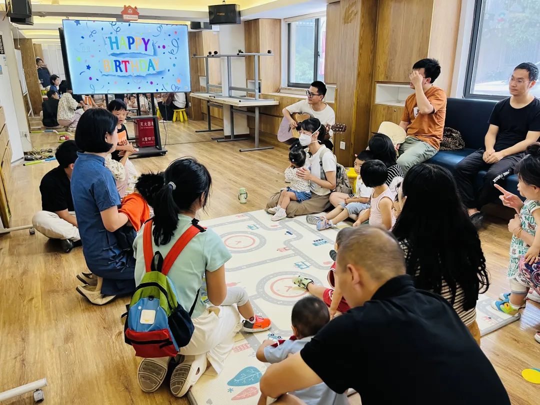 活动伊始,孩子们在自由活动时间里尽情玩耍,体验了项目组精心准备的各种幼儿玩具。为了进一步热场,老师组织大家为8月和9月生日的小朋友唱生日歌。在老师的吉他伴奏下,大家一起为过生日的孩子们唱起了中英文生日歌,现场气氛热烈而温馨。