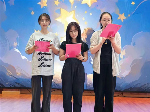 李逸婷、金嘉欣、王悦瑶三位老师的合唱表演《小幸运》以原曲的温馨旋律为基础,融入教师心声,重新填词,展现教育情怀,用温暖有力的声音,唱出对教育的热爱与坚守,向所有辛勤教师表达感激和致敬。
