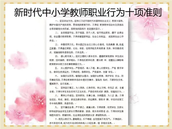 师以德为本,育师先育德。最后,全体教师签订遵守《新时代中小学教师职业行为十项准则承诺书》并一致表示:明确履行立德树人的神圣职责,维护教师的光荣形象,把承诺化为自觉行动,规范自身从教言行,用人格和学识魅力去影响和教育学生。