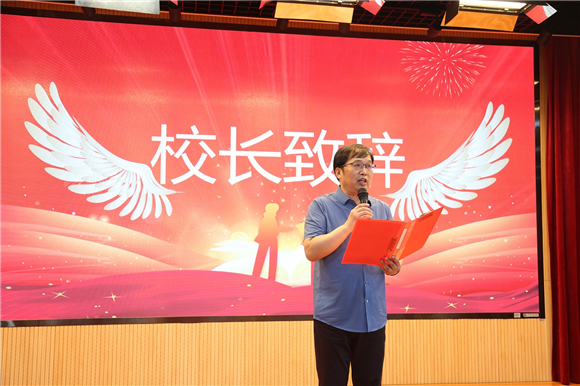 紧接着,学校党支部书记、校长王惠忠上台致辞,代表学校向全体教师致以节日的问候。他感谢教师们为学校发展所做出的巨大贡献,并鼓励大家在新时代的教育征程中,继续坚守教育初心和使命,扬师德,提师能,强师责,弘扬教育家精神,争做新时代“大先生”。