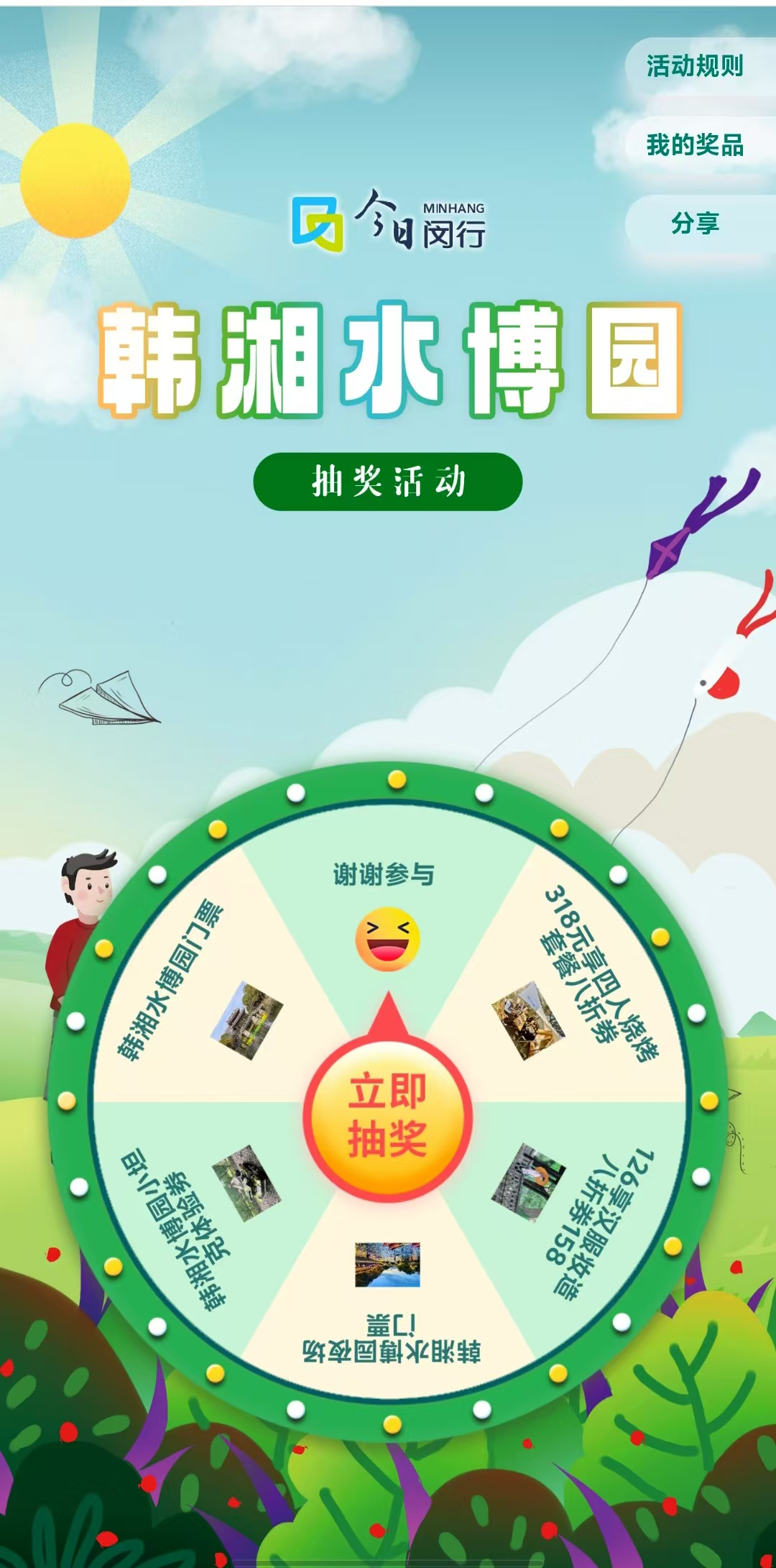 福利来啦!!!今日闵行X韩湘水博园中秋抽奖活动它来了!!!常规门票、夜场门票、体验券、优惠券随机赠送来试试吧~