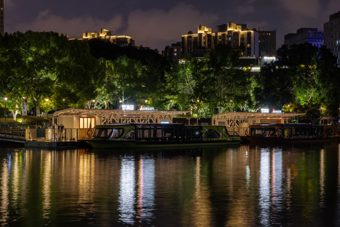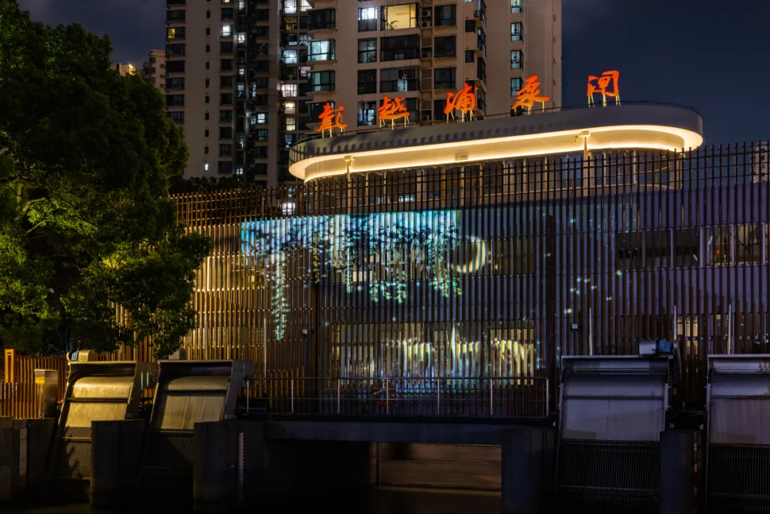 从潘家湾起始,沿河堤岸上的壁灯不仅照亮了前行的道路,更为沿途景色增添了一抹诗意。游船缓缓驶入这片水域,眼前的景象逐渐变化,在一组名为《沪上弄巷》的景观照明艺术装置周围,老上海弄堂的影像被栩栩如生地展现在眼前,通过光影交错的艺术形式,使人们仿佛穿越回那个充满故事的时代。众多行人纷纷在此停下脚步,争相打卡留念,将这独特景致定格为朋友圈中最亮丽的风景线。