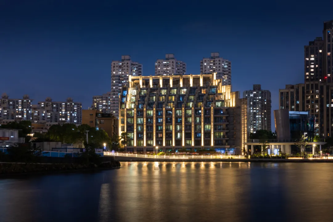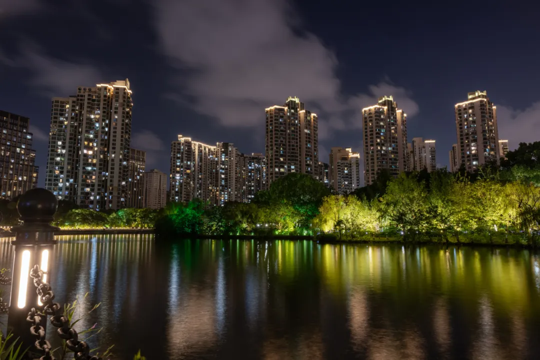 不远处的宜川养老院,经过景观照明升级改造,让整个区域焕发出了新的生机与活力。融入了防汛墙光影灯饰的栏杆与生态草岸的绿化相互映衬,是生态与艺术的双重享受。